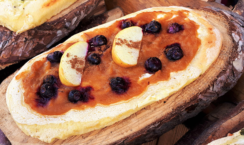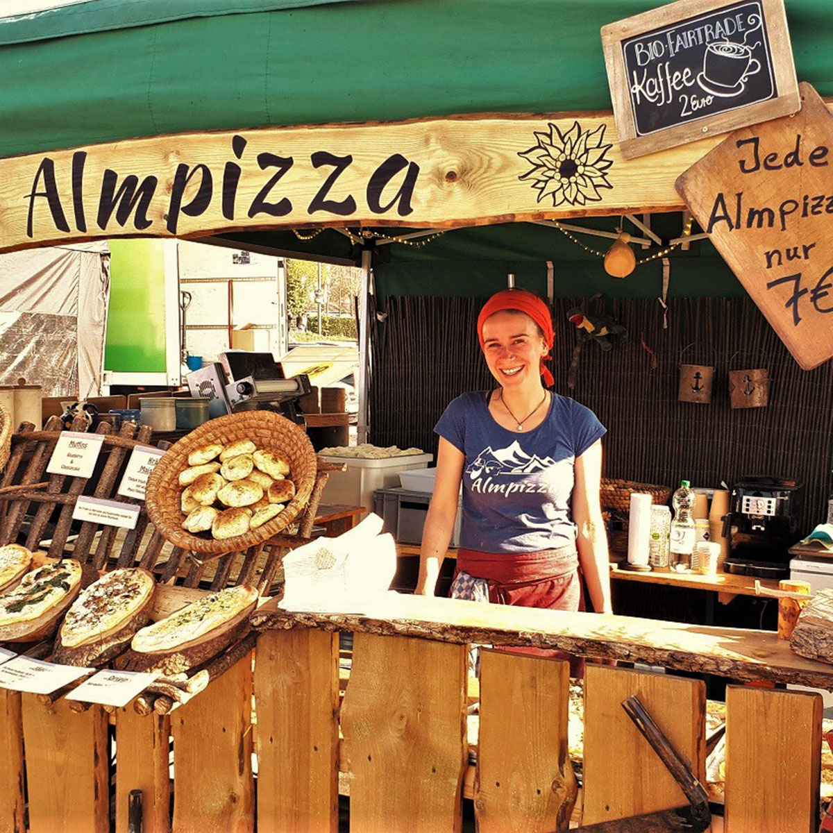 Überzeugen Sie sich selbst und genießen Sie ein Stück ofenfrische Almpizza in entspannter und angenehmer Atmosphäre am Almpizzastand.